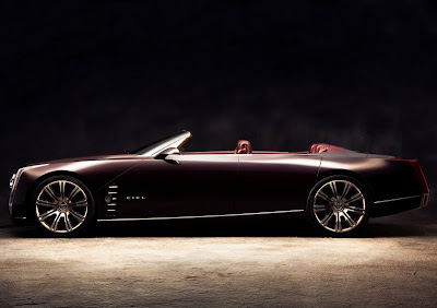 The 4-door Cadillac Ciel Concept embraces the social aspects of a recreational journey, with generous room for two couples. It evokes the spirit of the classics with a long, low proportion. The doors are French-style, with the rear doors hinged at the rear - there is no B-pillar - to reveal a sweeping view of the dramatic interior. Distinguishing fender lines run from nose to tail, and nickel-plated bright work accents the body lines, enhancing the visual length of the car and honoring Cadillac touring cars of the past.